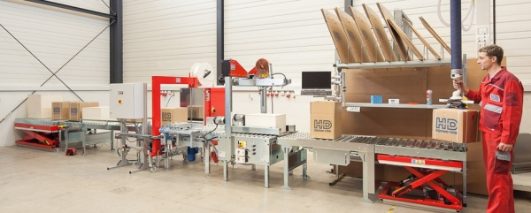 Conception de ligne d'emballage semi-automatiques. Les machines proviennent de fabricants européens